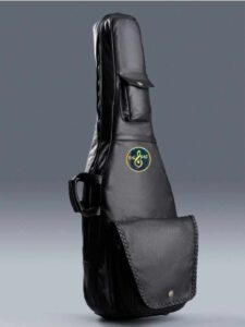 Beautiful, luxurious, high-end leather with over an inch of cushion throughout the interior that is covered by a special designer quality and breathable fabric. The heaviest end of the instrument (the bottom bout), which is more likely to touch the floor, is protected with a proprietary system of thicker interior cushion and strategically placed designer floor studs. At the headstock and bridge areas, there are two inverted 10 inch interior leather bridge and headstock protectors that gently but securely embraces your instrument and protects the special interior fabric and leather from steel and/or nickel string sticks. And although all of our gig bags are built for maximum comfort, you can further accessorize with our DeluXe Top Grain Leather Strap Cushions that very easily attaches to the shoulder straps of the Bag and adds a whopping additional inch of Leathered Cushion to the shoulder straps as it drapes over your back and shoulder area.